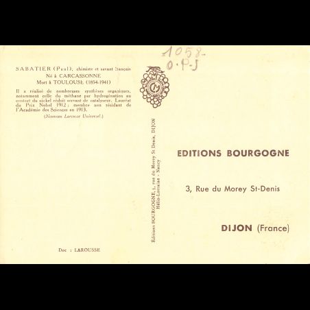 Carte maximum v2 - n° 1058 - Inventeurs et chercheurs célèbres. Paul Sabatier