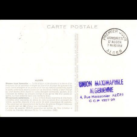 Carte maximum - n° 1195 - Armoiries d'Alger