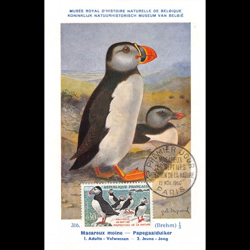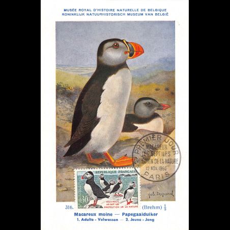 Carte maximum v6 - n° 1274a - Oiseaux. Macareux-moines