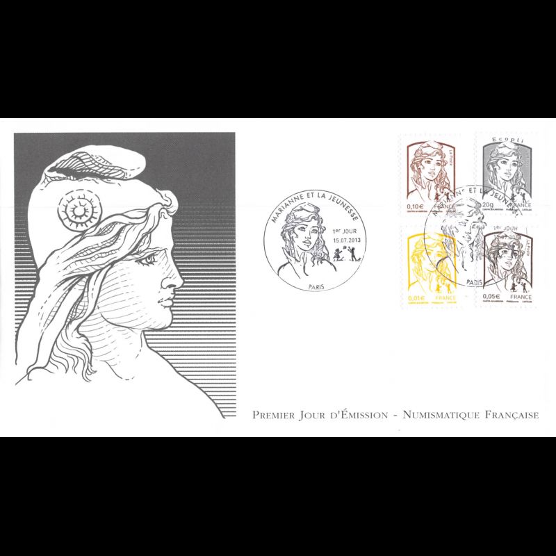 FDC LNF - Marianne et la jeunesse (env 1 sur 4), oblit 15/7/13 Paris - First Day Cover - Enveloppe premier jour de France.