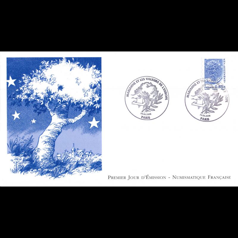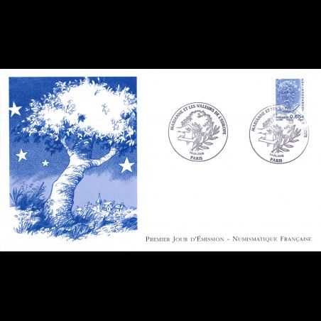 FDC LNF - Marianne et valeurs de l'europe (4203) - 14/06/2008 Paris - First Day Cover - Enveloppe premier jour de France.