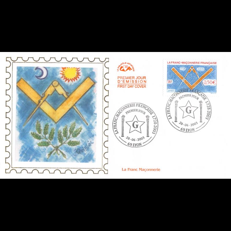 CEF soie - La franc-maçonnerie Française - 28/6/2003 Lyon - First Day Cover - Enveloppe premier jour de France avec illustration soie.